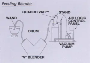 The Quadro Vac vacuum conveyor is an ideal, modern method for “up and in” conveying duties – much cleaner and less hazardous than manual loading and requires much less maintenance in comparison to mechanical conveying methods.